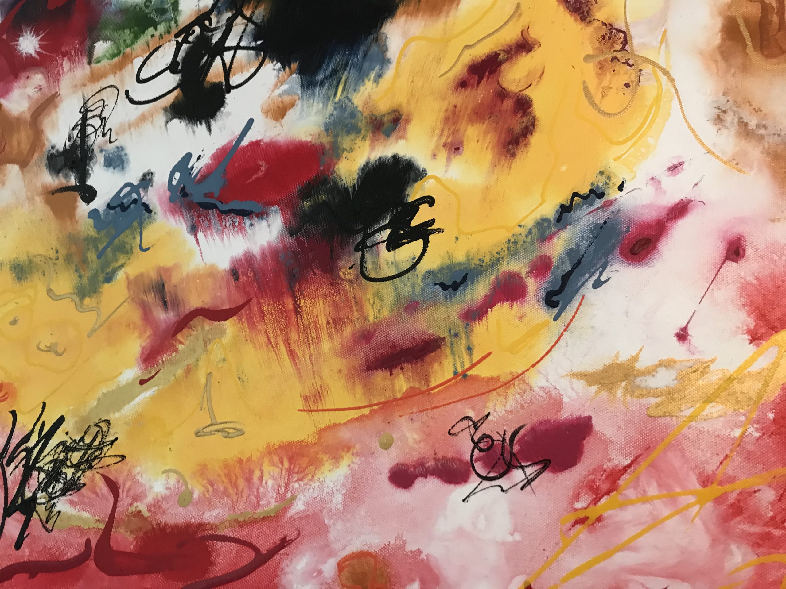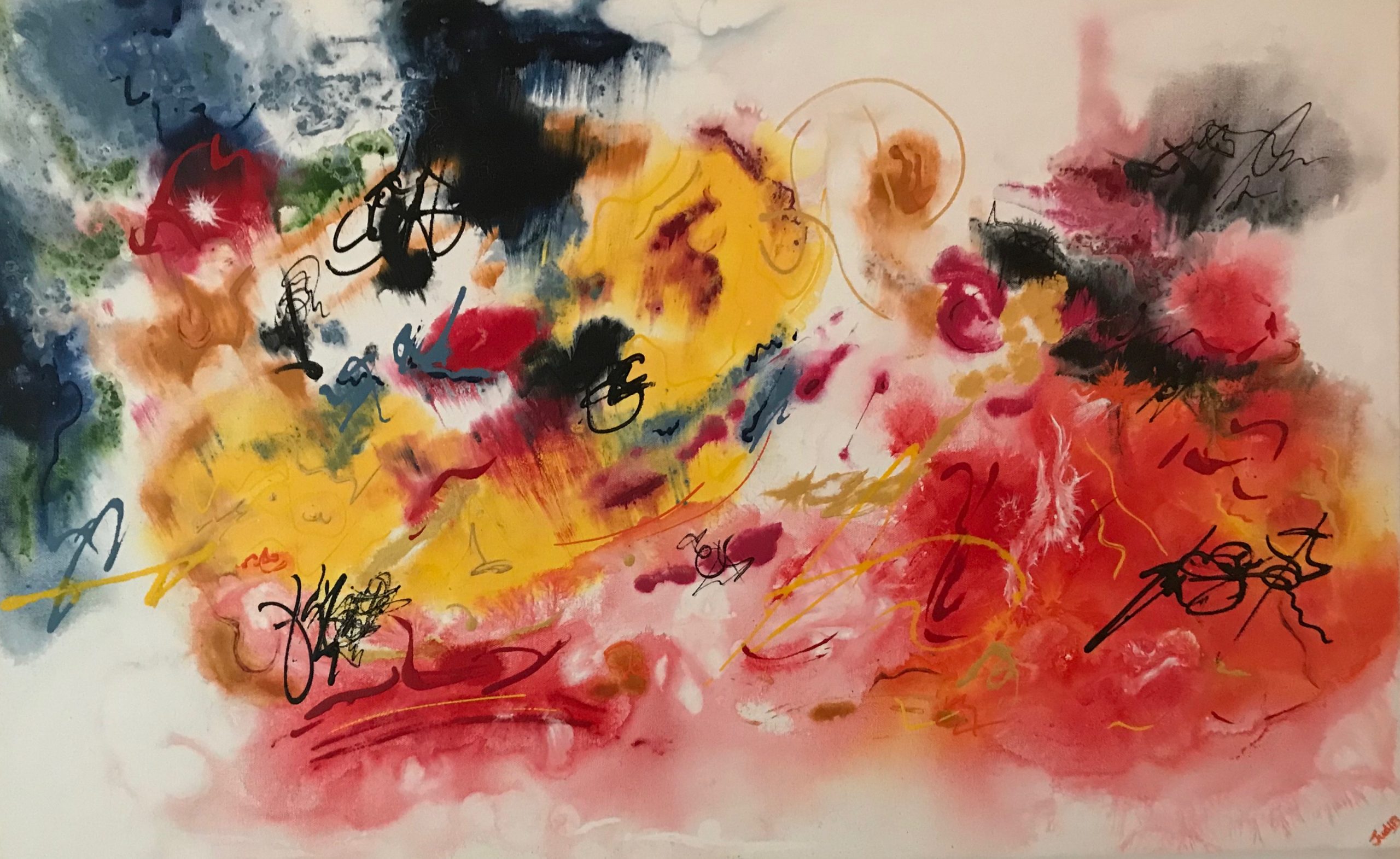 ABSTRACT 1 FIRESTORM 97 cm w x 60 cm h x 4 cm d. Acrylic on canvas