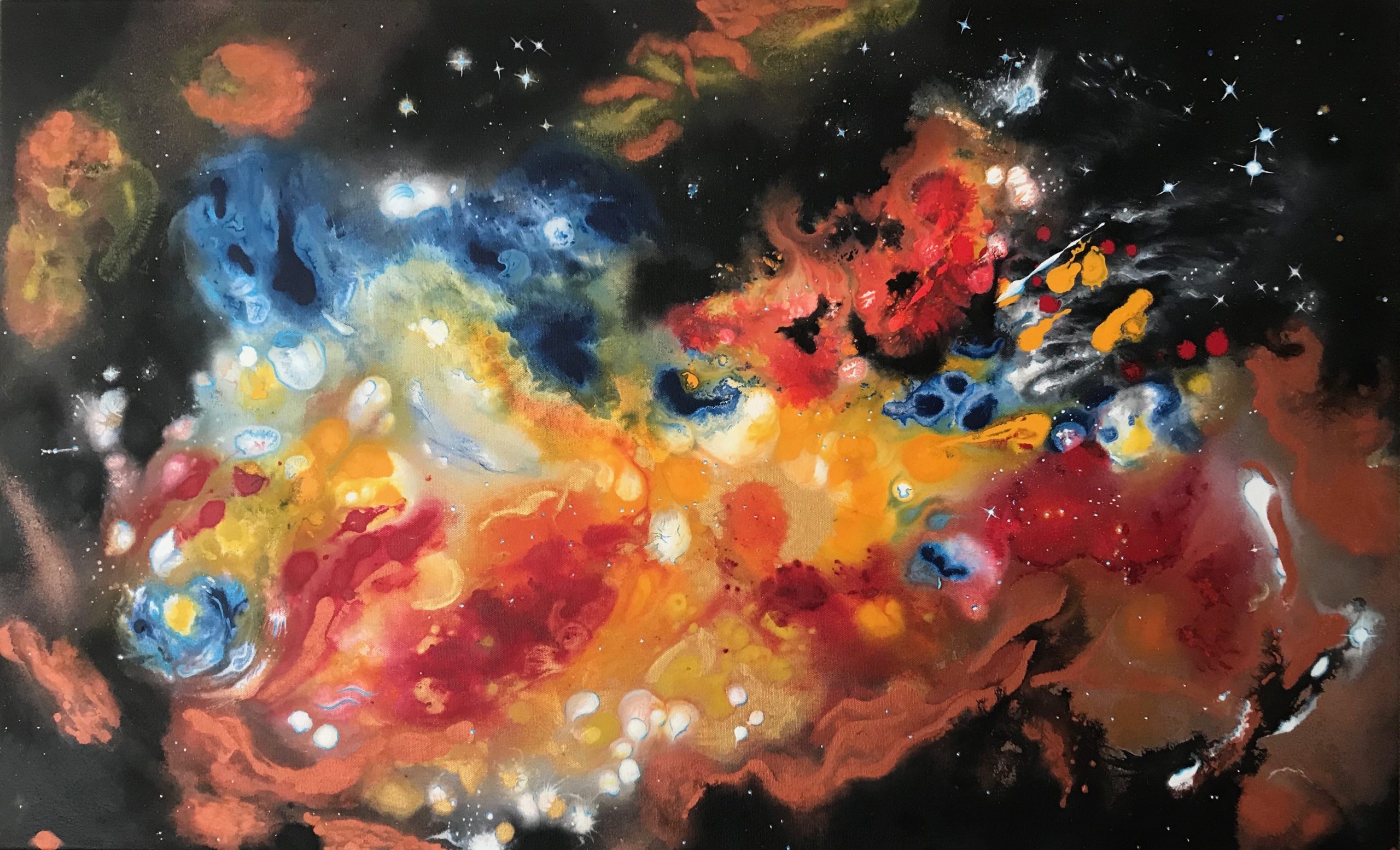 ABSTRACT 3 COSMOS 97 cm w x 60 cm h x 4 cm d. Acrylic on canvas.