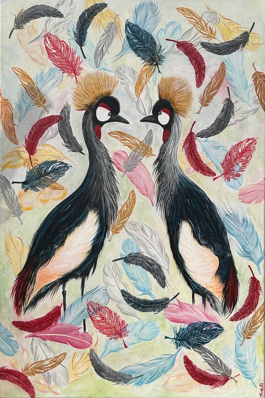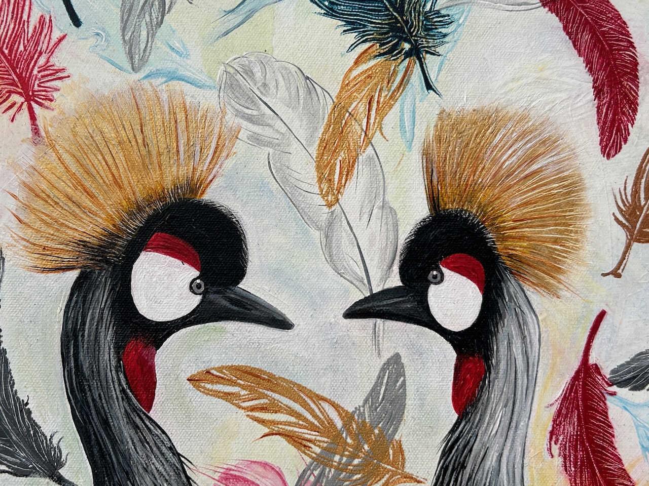 Black Headed Cranes – Approx 70 cm H x 50 cm W x 4 cm D.