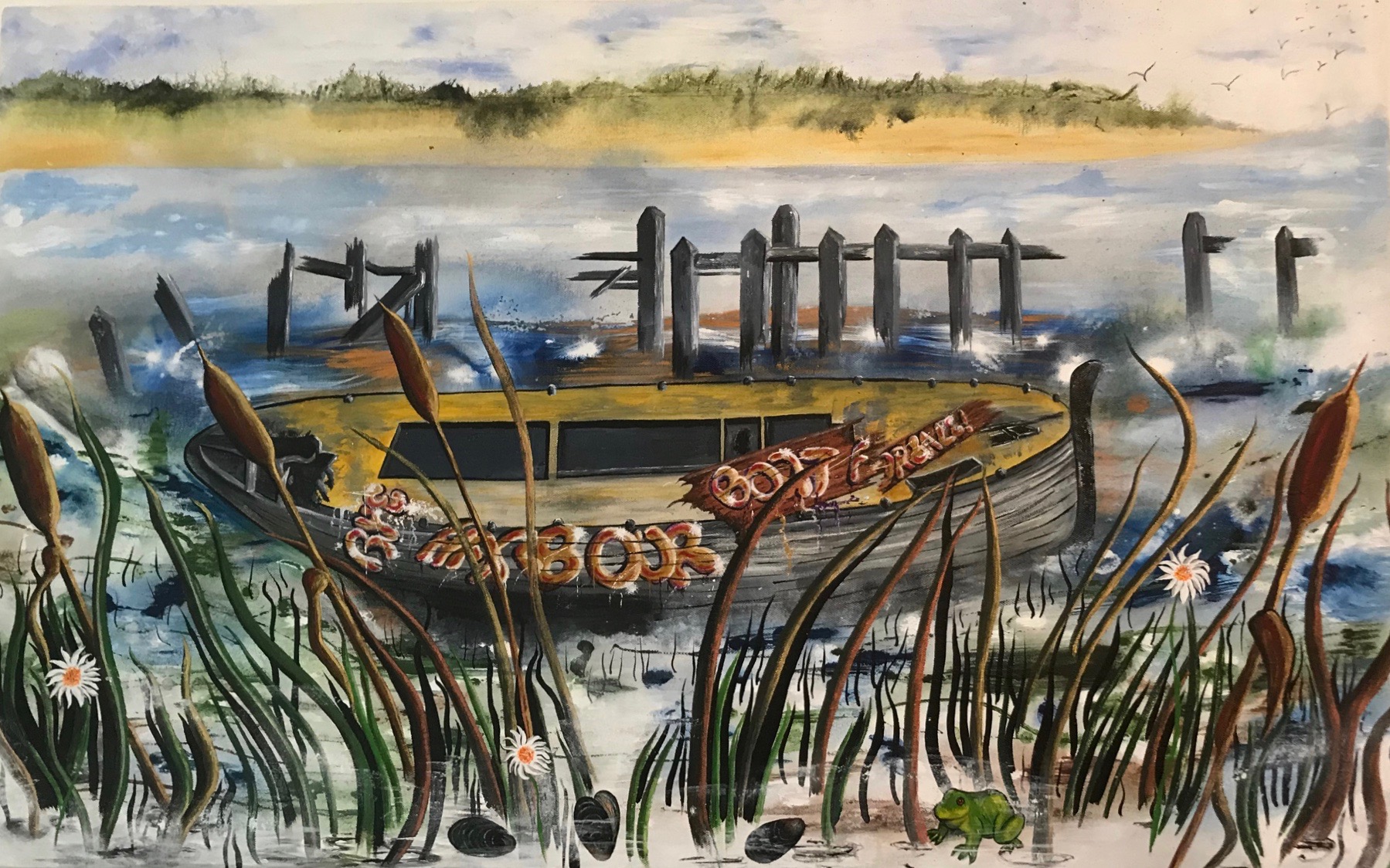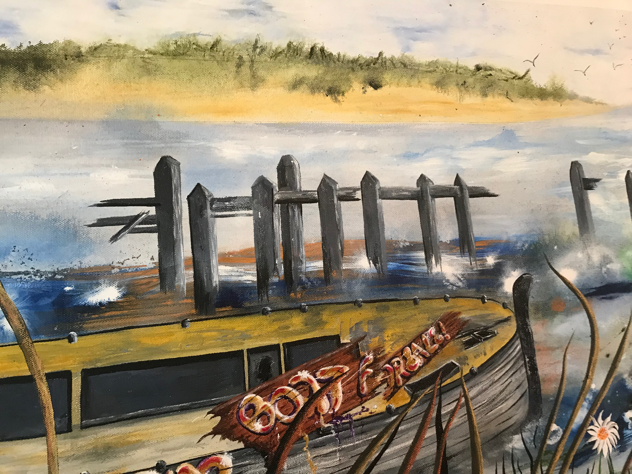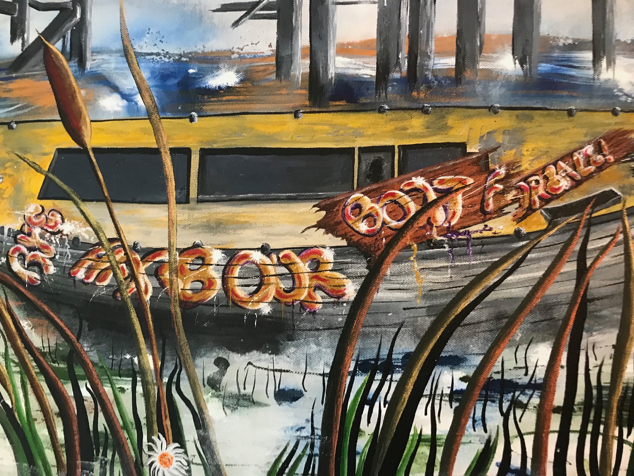 BOAT FOR SALE 97cm w x 60cm h x 2cm d. Acrylic on canvas