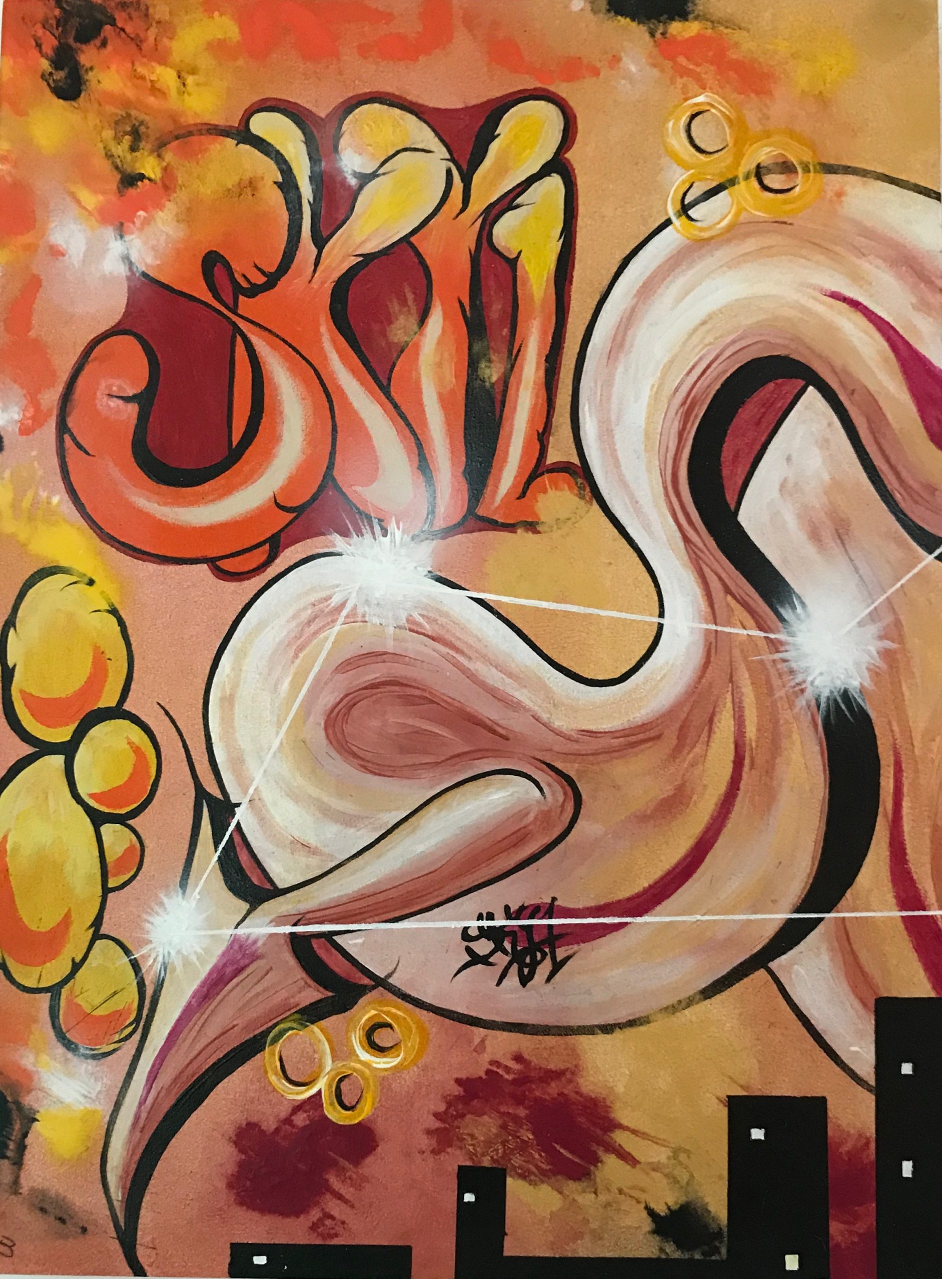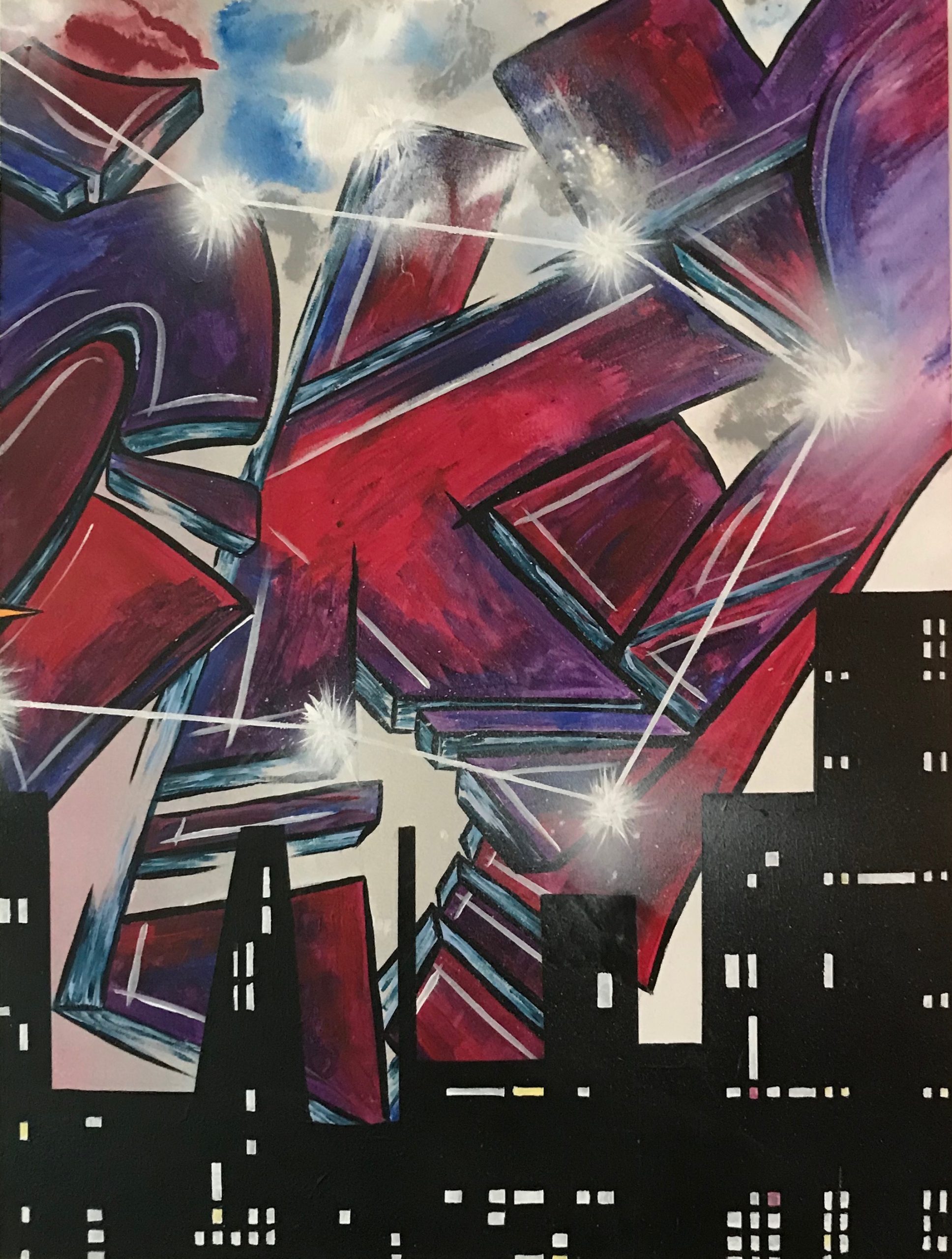 CITYSCAPE  3 x 30 cm w x 40 cm h and 2 cm deep. Acrylic on board paintings hung at different levels as a series of 3.