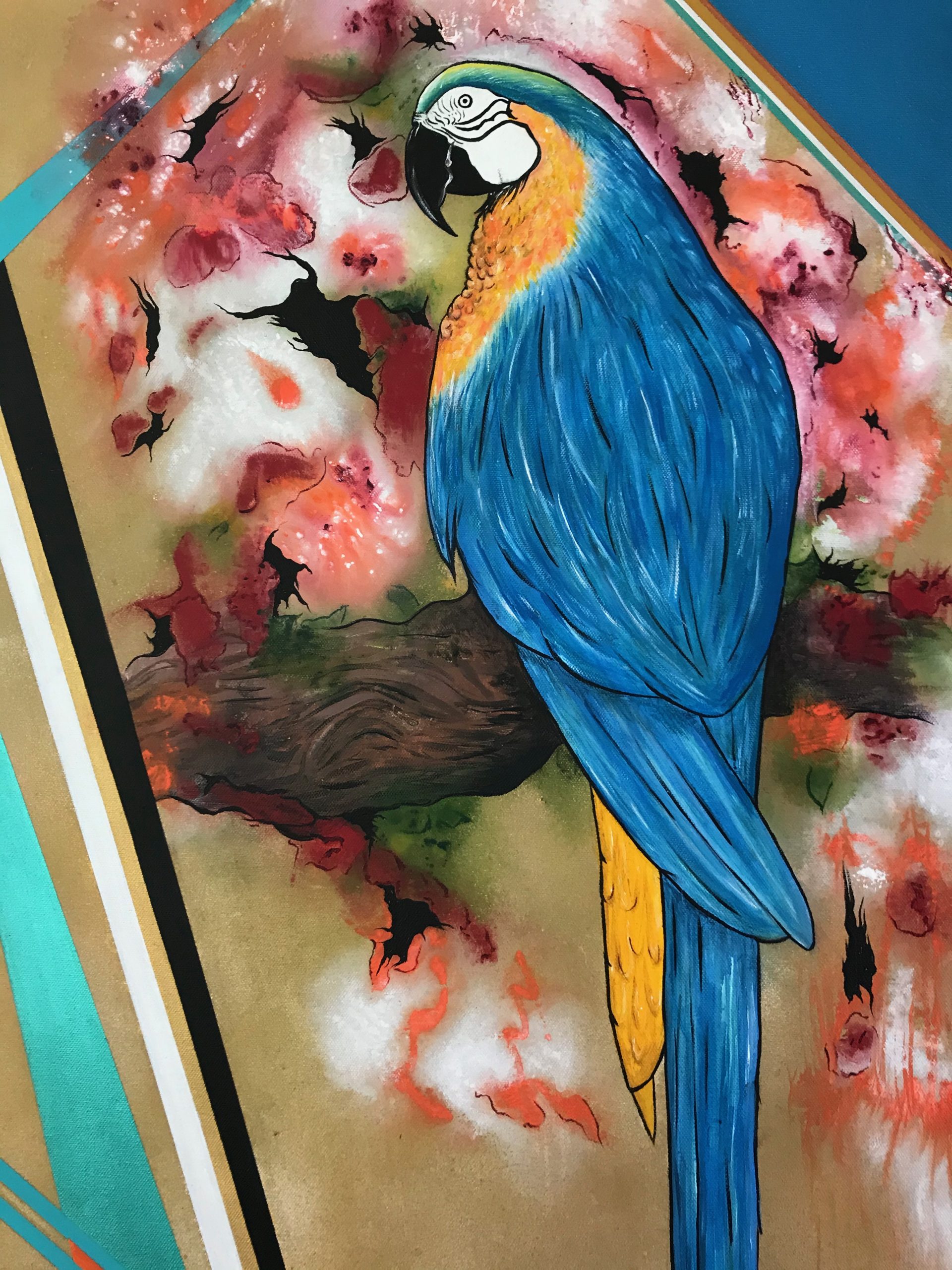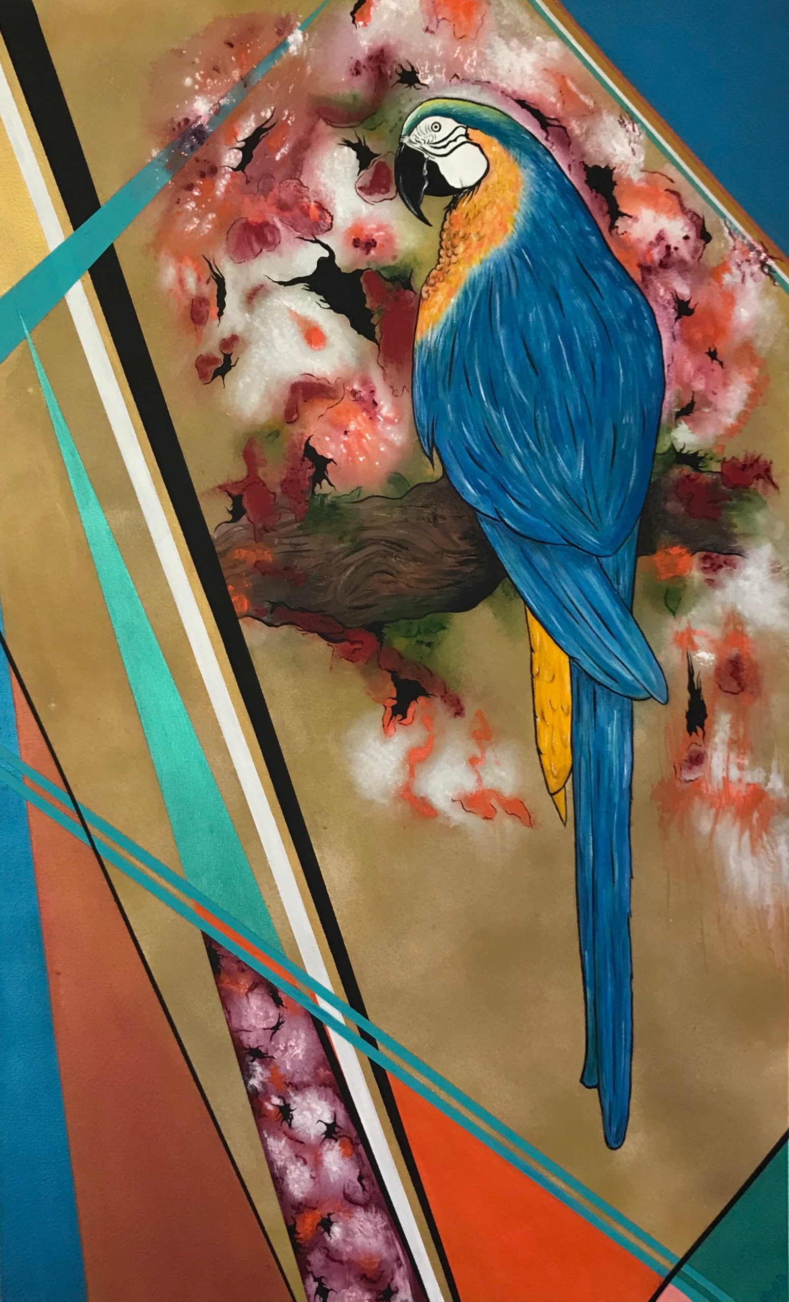 PARROT 60cm w x 97 cm h x 2cm d. Acrylic on canvas.